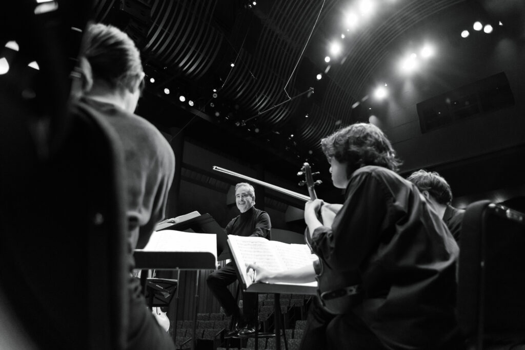 As a staff photographer, Mahler has access to unique moments on the Colburn campus, such as when students work with guest artists and conductors, like Maestro James Conlon. In this image, he’s rehearsing students for a Music Restored performance.